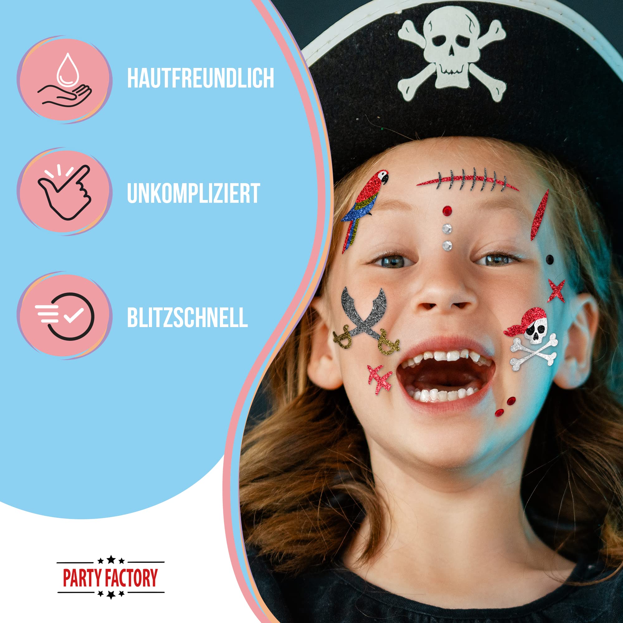 Party Factory Pirates Face Tattoo Various Designs Temporary Face Tattoo For Children And Adults Theme Parties Children S Birthday New Year S Eve Halloween Carnival Fancy Dress Pirate Amazon De Toys